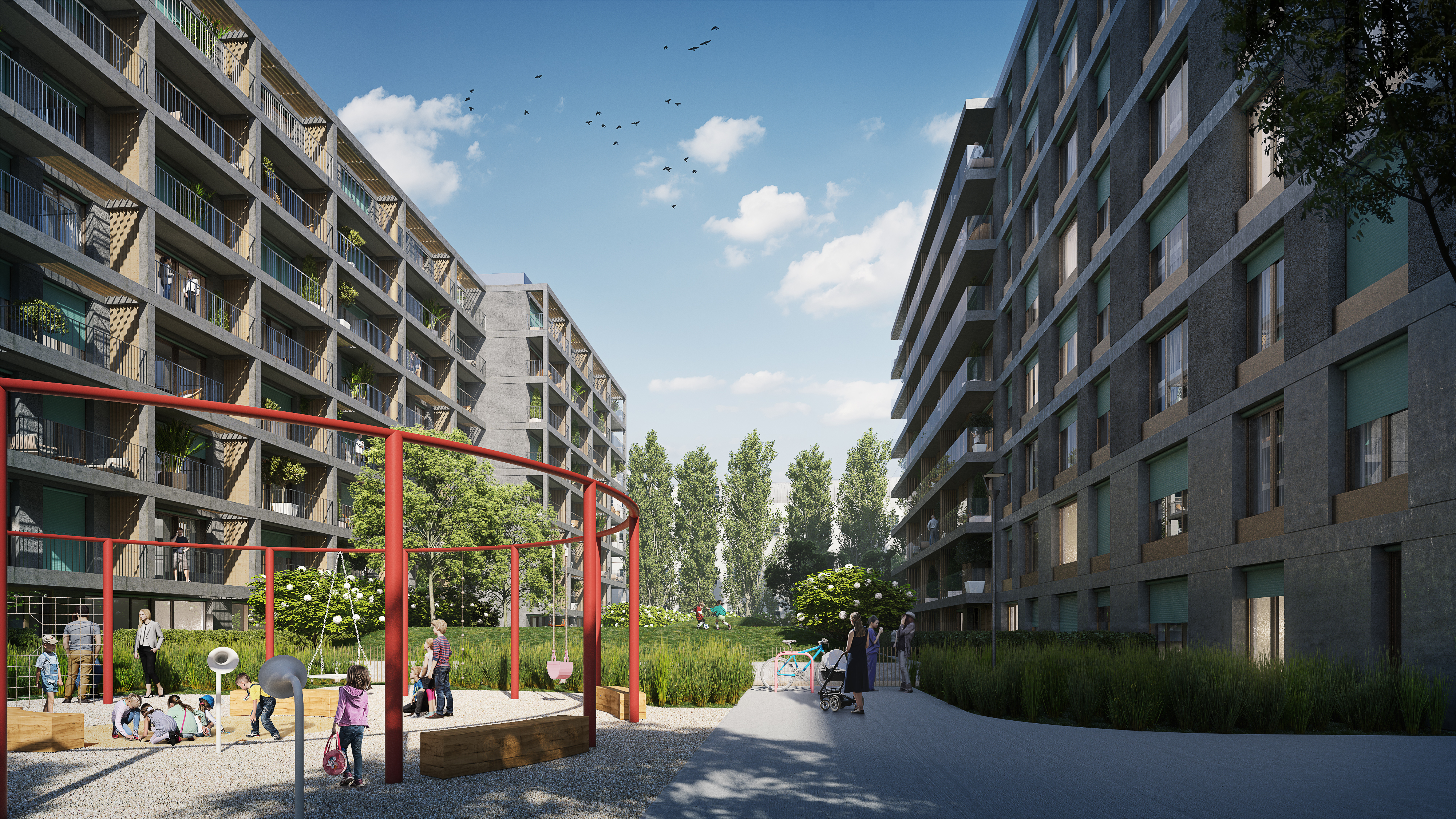 Riešenia sú postavené na princípoch kompaktnej a kontinuálnej mestskej krajiny, ktorej scénická a obsahová kvalita je overená z viacerých pohľadových a kompozičných úrovní. Nové budovy a ich obsah je plnohodnotne prepojený s fungujúcim a atraktívnym verejným priestorom. Vnútro navrhovanej mikroštvrte sa stáva aktívnou spoločenskou obývačkou. Pocit domova a mestského priestoru nie je ohraničený a prelieva sa otvoreným prostredím, kde vznikajú zdieľané a bezbariérovo previazané typológie. Urbanistická konfigurácia je postavená na logickom krížení dvoch dôležitých a sekvenčných priestorov. Tvoria ju transformovaná vnútorná pobytová ulica (Školská ulica) a peší krížny ťah od zastávky električky až na Fazuľovú ulicu. Krížne spojenie vedie cez nové mestské námestie a cez hmotu novej budovy do vnútra rezidenčného dvora, kde vzniká malé komunitné námestie s funkciami pre lokálnych rezidentov. Komunitné námestie je uzlovým priestorom prepájajúcim nový park, ktorý integruje existujúcu rezidenčnú budovu a je aj vstupom do privátneho vnútrobloku určeného novým rezidentom. Objekty a externé priestory sú navrhnuté tak, aby ponúkli atraktívne a adaptabilne využiteľné rozhranie. Umiestnenie aktívneho mestského parteru a rovnako aj bytových jednotiek je vždy previazané s prepojenou exteriérovou funkciou.